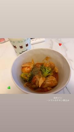 おはよう(*´˘`*)♡ 今日は店休日です!!!! 休みの日なのに めちゃくちゃ早く起きてしまったので トマトチキン煮込み🍅 作ったのー!!!! 簡単だし栄養あるし 美味しいという神メシ⚡️ 明日は何を作ろうって 寝る前に😴 TikTokで調べる時間 ワクワクして楽しいんだよね⊂( ᴖ ̫ᴖ )⊃ 今週もありがとうございました🥹 また火曜日からお会いしましょう♡♡